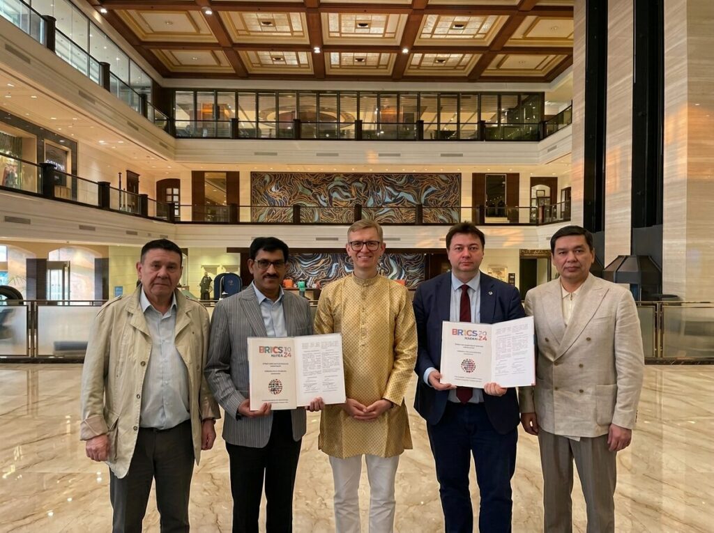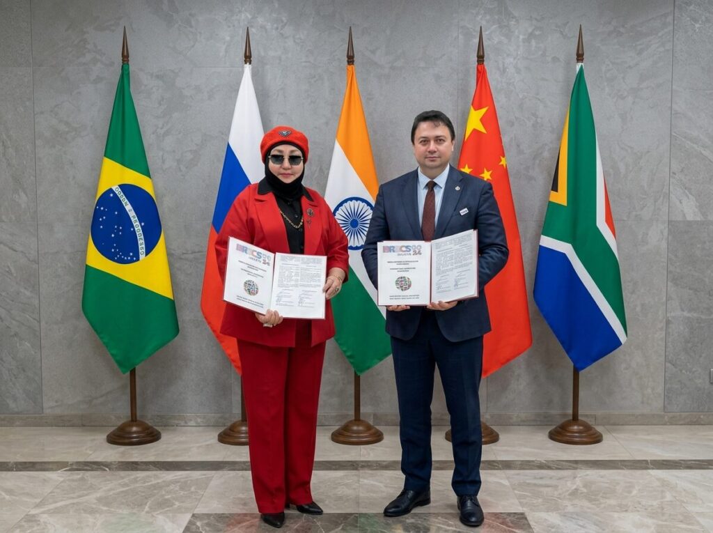 On November 6, 2025, at the WORLDBRICS Moscow office, in the Federation Tower "Vostok," an agreement was signed for the company "AsMadi Investment Center" to join the international consortium WORLDBRICS. General Director Madina Uisimbaevna Kalimbetova, by order No. 2025-11-06-001 dated November 6, 2025, was appointed to the position of Advisor to the Co-Chair of the International Consortium WORLDBRICS, Head of the Coordination Council for Analytical Strategy and Security within BRICS Marat Mazhidovich Islamov.